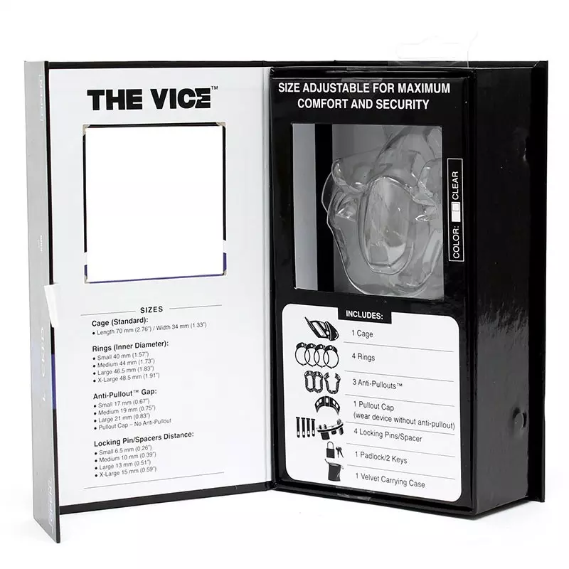 Contrairement aux autres appareils disponibles sur le marché qui peuvent facilement être retirés, The VICE vous gardera prisonnier jusqu’à ce que votre maître ne vous libère. Aucun rapport sexuel ne vous sera possible. Vous allez vivre une soumission totale et sans compromis !