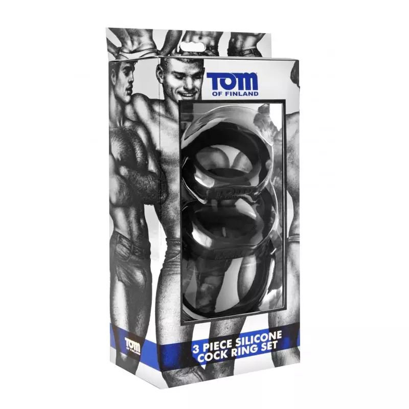 Le Cockring Set de la marque Tom Of Finland est composé de trois anneaux péniens de différentes tailles fabriqués dans une silicone haut de gamme, lisse, rigide mais extensible.