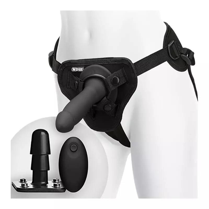 Le support Vac-U-Lock quant à lui est vibrant et rechargeable. Il est doté d’un puissant moteur, offrant sept modes de vibrations. Il se contrôle grâce à la télécommande sans fil fournie. Le support se glisse parfaitement dans le harnais, pour transformer n’importe quel accessoire en un puissant vibromasseur.