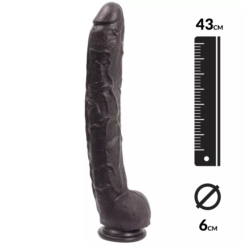 Cet énorme dildo veiné comblera les utilisatrices à la recherche de sensations extrêmes avec une longueur de 43cm qui requiert déjà une certaine expérience.