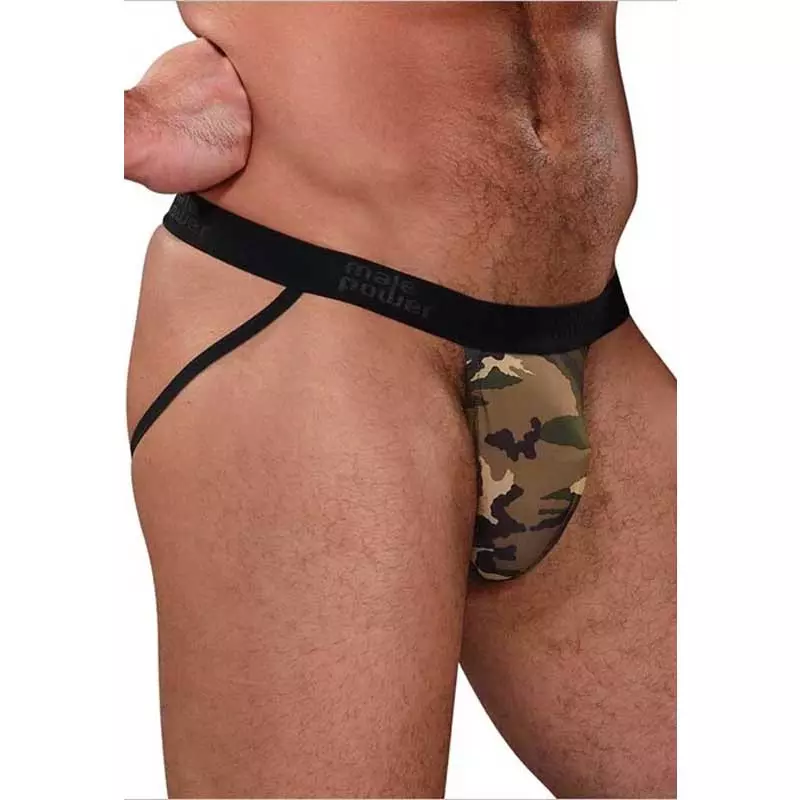GI Jock proposé par Male Power : un jockstrap pour homme qui associe tissu doux et imprimé camouflage pour rehausser vos charmes.