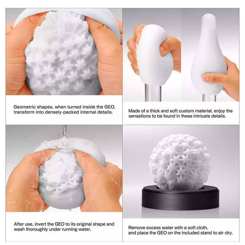 Les masturbateurs Tenga GEO sont réutilisable avec un lavage et un soin adéquats. Pour des sensations optimales et une longévité maximale, nous vous recommandons d’utiliser les lubrifiants Tenga Hole Lotion.