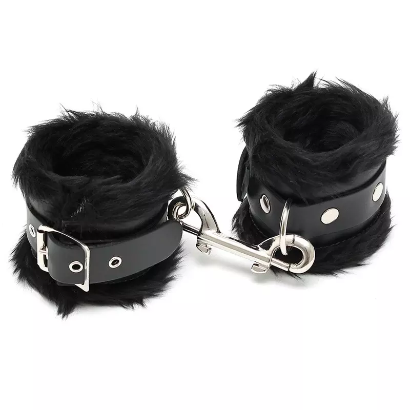 Menottes Rembourrées En Cuir & Fourrure Noir – Rimba