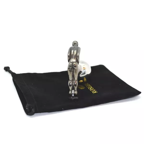 Une statuette masculine en bronze finalise l’extrémité de ce magnifique bijou d’anus. Non content de vous pénétrer de son énorme dard, il vous scrute au plus près en toute impudeur et vous caresse de ses pieds.