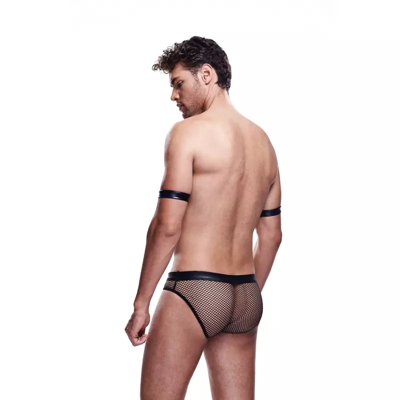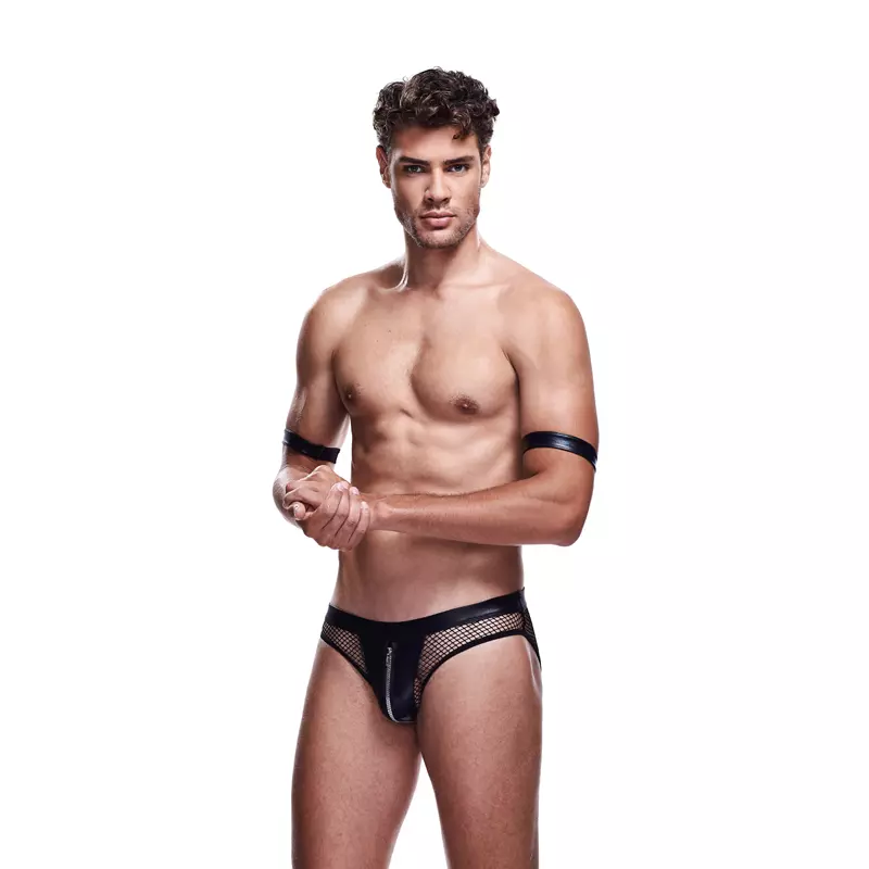 Il est prêt à vous menotter et à vous lire vos droits ! Cet ensemble sexy de Envy Menswear est conçu comme un slip en maille et en plumes, avec une fermeture éclair sexy et alléchante sur le devant, et des liens aux biceps complètent le look qui vous laissera aux commandes !