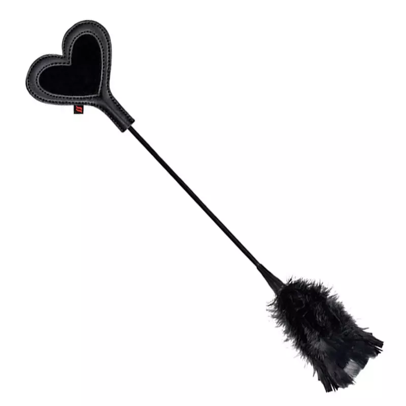 Très pratique, cet accessoire BDSM possède deux extrémités différentes. Une tapette en forme de coeur recouverte d’une légère fourrure noire pour de douces fessées et un plumeau doux pour stimuler les zones érogènes externes ou pour chatouiller.