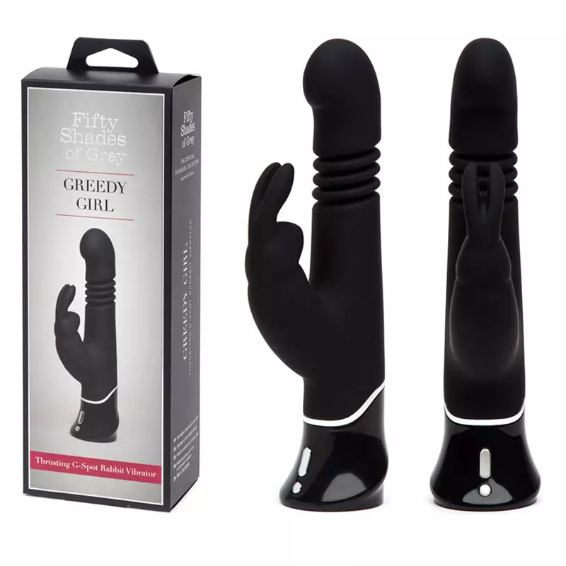 Voici Greedy Girl Thrusting G-Spot, le tout nouveau vibromasseur rabbit de la marque Fifty Shades of Grey qui vous offre des incroyables mouvements de pénétration automatisés.